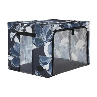 Periea ‘Beau’ Folding Collapsible Stackable Fabric Home Storage Boxes with Steel Frames (Black Grey Floral, Large)