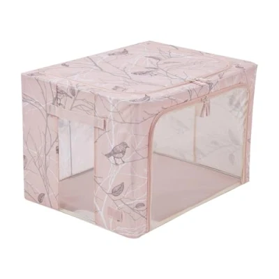 Periea ‘Beau’ Folding Collapsible Stackable Fabric Home Storage Boxes with Steel Frames (Blush Birds, Large)