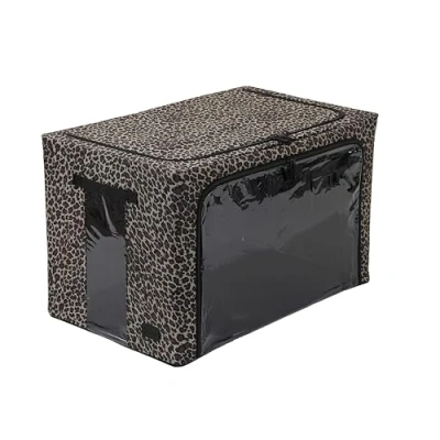 Periea ‘Beau’ Folding Collapsible Stackable Fabric Home Storage Boxes with Steel Frames (Gold Leopard, Jumbo)