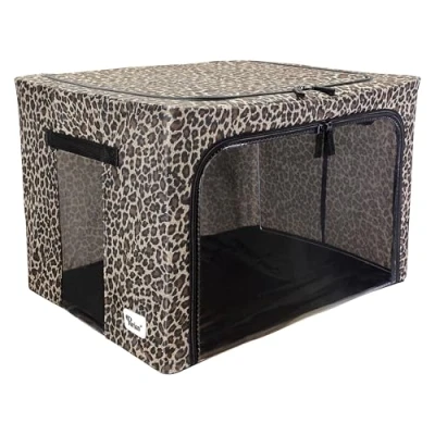Periea ‘Beau’ Folding Collapsible Stackable Fabric Home Storage Boxes with Steel Frames (Gold Leopard, Large)
