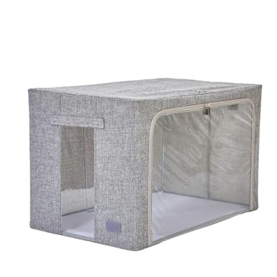 Periea ‘Beau’ Folding Collapsible Stackable Fabric Home Storage Boxes with Steel Frames (Grey Hemp, Jumbo)
