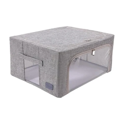 Periea ‘Beau’ Folding Collapsible Stackable Fabric Home Storage Boxes with Steel Frames (Grey Hemp, Medium)
