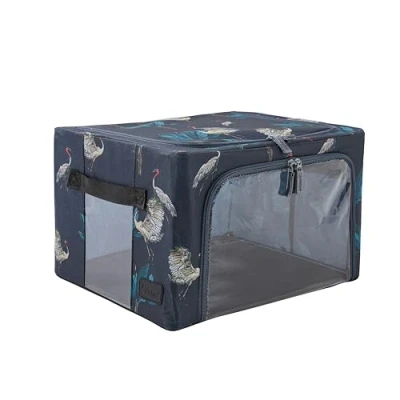 Periea ‘Beau’ Folding Collapsible Stackable Fabric Home Storage Boxes with Steel Frames (Heron Print, Small)