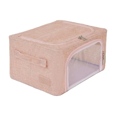 Periea ‘Beau’ Folding Collapsible Stackable Fabric Home Storage Boxes with Steel Frames (Light Pink Hemp, Compact)