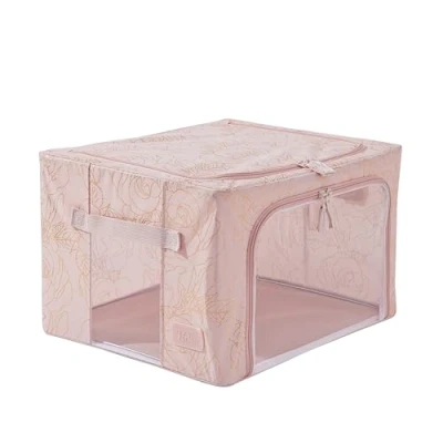 Periea ‘Beau’ Folding Collapsible Stackable Fabric Home Storage Boxes with Steel Frames (Metallic Floral Blush, Small)