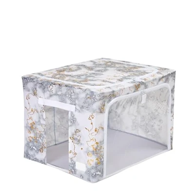 Periea ‘Beau’ Folding Collapsible Stackable Fabric Home Storage Boxes with Steel Frames (Metallic Marble, Large)