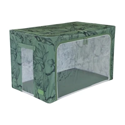 Periea ‘Beau’ Folding Collapsible Stackable Fabric Home Storage Boxes with Steel Frames (Olive Floral, Jumbo)