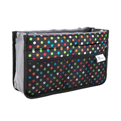 Periea Chelsy Handbag Organiser Insert (Black with Multi Coloured Polka dots, Medium)