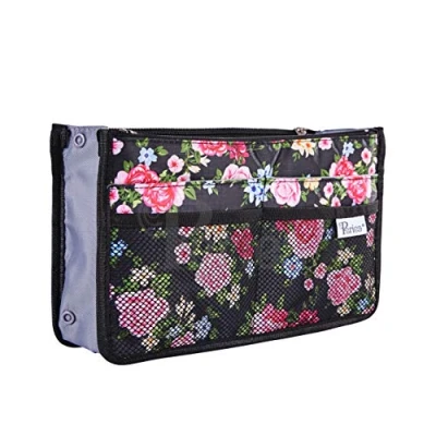 Periea Chelsy Handbag Organiser Insert (Floral Black, Medium)