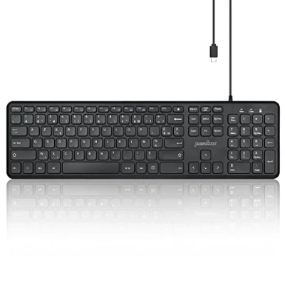 Perixx PERIBOARD 210C Full Size USB C Wired Keyboard with Silent Scissors Keys Compatible Tablets, Computers and Laptops Black French AZERTY