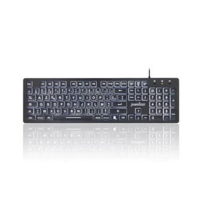 Perixx PERIBOARD 317, Clavier Rétroéclairé Filaire USB pour Windows Touches à Membrane avec Rétroéclairage LED Banc AZERTY Français