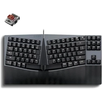 Compact Size Keyboard With Ergonomic Design: Compact Ten-Key-Less keyboard with a split-key design and curved frame promote a better posture by helping to position the wrist and arms in the most natural typing posture Brown Tactile Mechanical Switches: The brown clicky switch is designed for use with good key-press feedback with less loud clicky sounds. For those with heavy coding or typing work, this clear indication of the key switch is an ideal solution for you without much of the clicky noise. Adjustable Tilt Wrist Rest: The integrated palm rest supports the palm and wrist while correcting the wrist pronation while typing to prevent unwanted pressure and muscle strains with 0, -4, and -7 degrees. Programmable Keys: Intuitive software to rearrange the keys, assign custom key actions, and macros to simplify specific tasks and optimize workflow. The dedicated Win and Mac keys can switch easily between the Mac OS X and Windows systems. System Requirements: Compatible with Windows 7, 8, 10, and 11, Linux, and Mac OS X; Durable USB cable with 5.9Ft long; Inside the Box: PERIBOARD-535 keyboard, manual