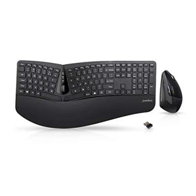 perixx Periduo 605, Wireless Ergonomic Split Keyboard and Vertical Mouse Combo, Adjustable Palm Rest Membrane Low Profile Keys, Black, US English Layout (11633)