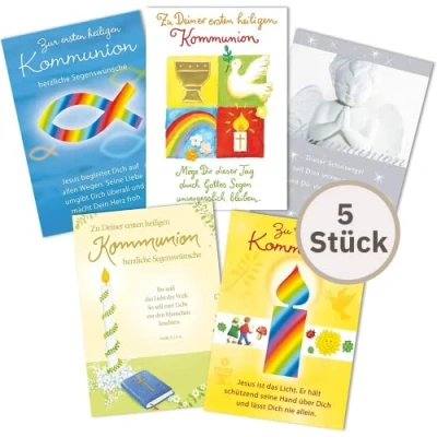 Perleberg 7122002 2 Communion Card Set with Envelope 11.6 x 16.6 cm 5 High Quality Cards Colourful Motifs
