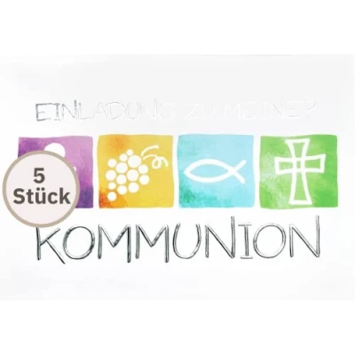 Perleberg 7127302 2 Communion Invitation Card with White Envelope 10.5 x 14.5 cm to Colourful Symbols Cards for Girls and Boys High Quality