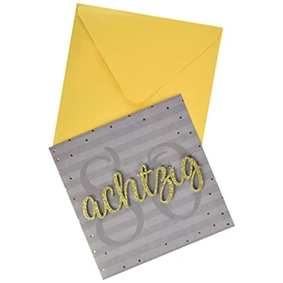Greetings card, greeting card, card Birthday number 80 Includes envelope in: gold 80th Birthday Card Lettering - Eighty - 15 x 15 cm
