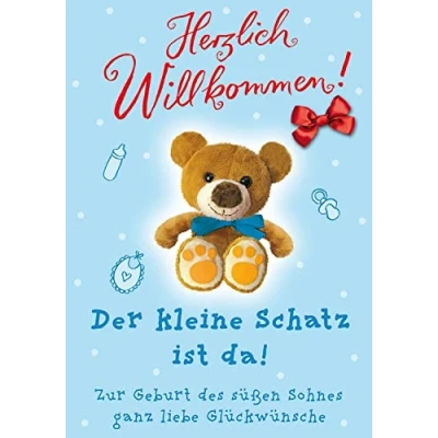 Perleberg Birthday Card with Teddy Motif Basic Classic Collection Quality Birth for Boys Lovely Gift Matching Envelope 11.6 x 16.6 cm