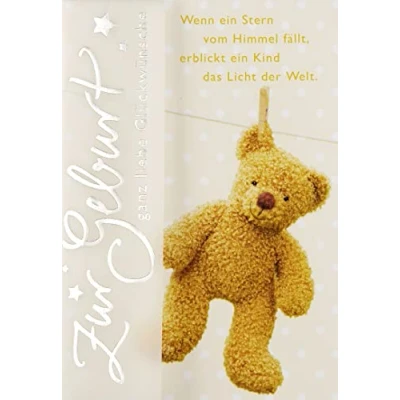 Perleberg Birthday Card with Teddy Motif Basic Classic Collection Quality Birth for Girls & Boys Lovely Gift Envelope 11.6 x 16.6 cm