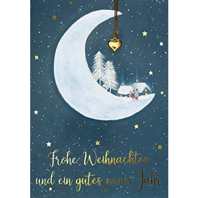 Perleberg Classic Christmas Card with Envelope in Gold High Quality Postcard Lovingly Designed Moon Motif for Beautiful Greetings Greeting