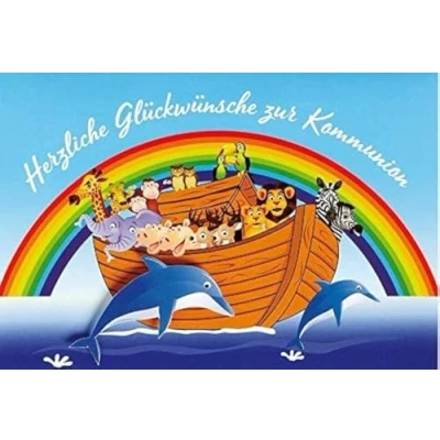 Perleberg Communion Card with Yellow Envelope 11.6 x 16.6 cm High Quality Greeting Rainbow Motif for Girls and Boys Ideal Money Gifts