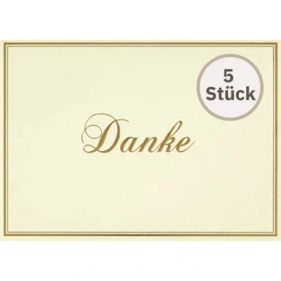 Perleberg General Greeting Card Thank You in Premium Quality high Pack of 5 Including Envelope Cream Stylish Cards 10.5 x 14.5 cm