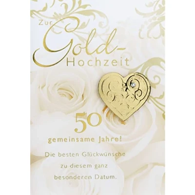 Perleberg Gold Anniversary Card with Heart Applique Lifestyle Collection Wedding for Congratulations Golden Gift Envelope 11.6 x 16.6 cm