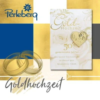 Perleberg Gold Anniversary Card with Heart Motif Lifestyle Collection Wedding for Congratulations Golden Gift Envelope 11.6 x 16.6 cm