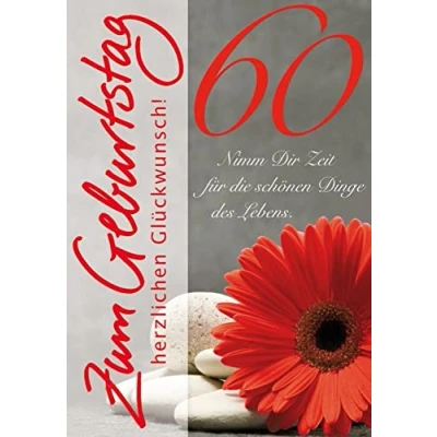 Perleberg High quality birthday card from the Basic Classic Collection elegant for 60th in premium beautiful cards including envelope 11.6 x 16.6 cm