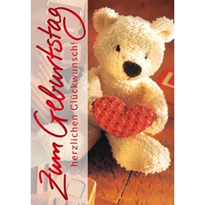 Perleberg High quality birthday card from the Basic Classic Collection teddy bear with heart for envelope premium cards 11.6 x 16.6 cm