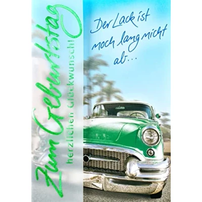 Perleberg High quality birthday card from the Basic Classic Collection with vintage car motif envelope premium cards 11.6 x 16.6 cm