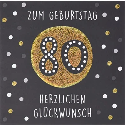Perleberg High Quality Birthday Card from The Black & Gold Collection with Glitter Motif and Lettering Elegant for 80th Including Envelope Premium Cards 15 x cm