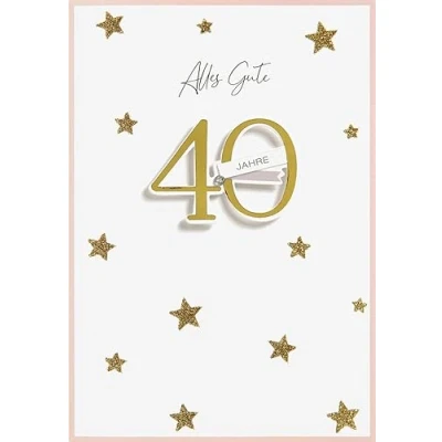 Perleberg High Quality Birthday Card from The Lifestyle Collection with Number in Gold and Star Motif, Elegant for 40th Including Envelope, Premium Cards 11.6 x 16.6 cm