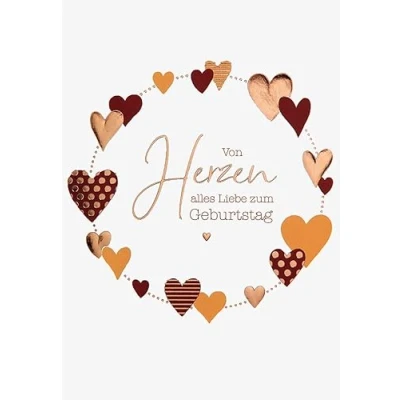 Perleberg High Quality Birthday Card from the Lifestyle Collection with Text and Heart Motif Colourful Envelope Premium 11.6 x 16.6 cm