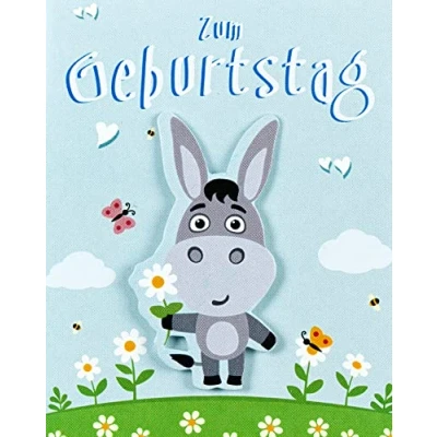 Perleberg High quality birthday card from the midi Collection for with donkey motif beautiful premium cards including envelope and clip 6.5 x 8 cm