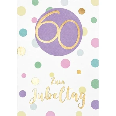 Let yourself celebrate – whether for yourself or as a gift – the Perleberg 60th birthday card with envelope is sure to leave an unforgettable impression thanks to its great 60 gold motif and chic dots. Unique motifs – all our birthday cards are decorated with a wonderful motif. So you can choose the card that best suits your wishes. Certified and high quality – we take our responsibility towards people and nature very seriously. We are a member of amfori BSCI and our cards are FSC certified (FSC C136244) to ensure sustainable forestry. Discover now – with our wide selection of greeting cards for every occasion, you will find your matching motif and put a smile on your loved one's face. PERLEBERG - Thanks to the perfection we have set ourselves as our goal, our family business with the brand Perleberg, is one of the leading German greeting card publishers.
