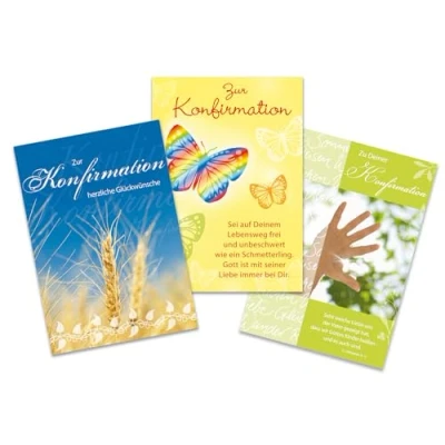 Perleberg Set of 3 Confirmation Cards with Different Motifs and Matching Envelopes 11.6 x 16.6 cm