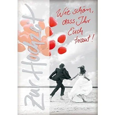 Perleberg Wedding Card with Couple Motif & Text Basic Classic Collection Premium Quality Lovely Gift Envelope 11.6 x 16.6 cm