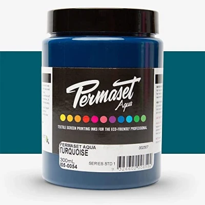 Permaset Aqua Standard 300ml Turquoise Screen Printing Ink for Fabric Ideal Kit Home Office, Starter Kit, Paint, Printer and Other