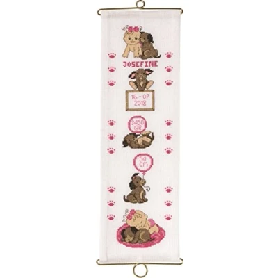 Permin counted Cross Stitch kit baby girl and puppy bell pull 36-7450 Cross-stitch counted kits