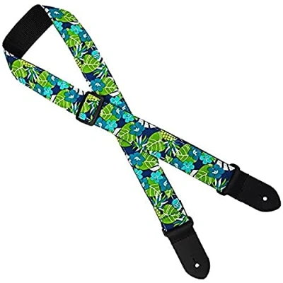 Perri's Leathers FWS15 7131 Nylon Ukulele Strap 1.5", Blue Leaves