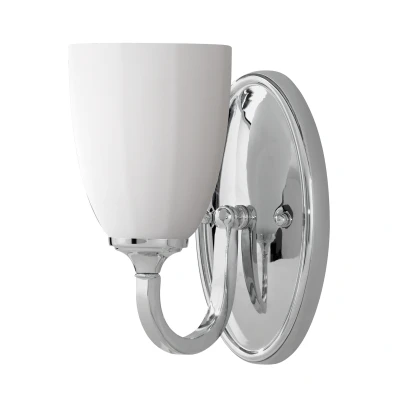 Net LightingThis wall light features a bright white textured glass shade set attractively into a metal branch attached to an elegant oval shaped mount finished in a polished chrome effect. Also available in this range; Flush Mount.