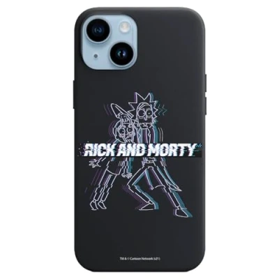 Rick & Morty Glitch compatible black flexible case for iphone 15 plus