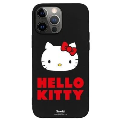 Black Flexible Case Compatible For iPhone 15 Pro Max Hello Kitty Logo