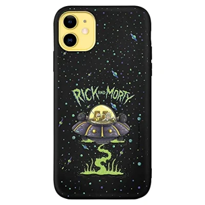 Personalaizer iPhone 11 Case Black with Rick and Morty UFO Design