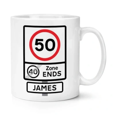 Personalised 50 Speed Limit Sign Zone Ends 50th Birthday 10oz Mug Cup