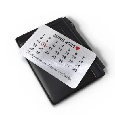 Personalised Aluminium Silver Wallet Photo Insert Card, Metal & Message Waller Purse Sentimental Memory Card Keepsake (Calendar)