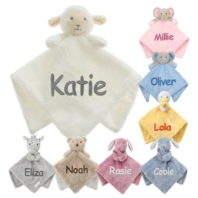 Personalised Baby Comforter Blanket Newborn Christening Shower Gift Boy Girl Keepsake Soft Snuggly Toy Blankie (Lamb)