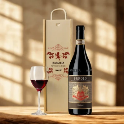 Personalised Barolo Mundi Red Wine Gift Set – 75cl | 14.5% ABV A Classic Italian Red Wine Gift This personalised Barolo Mundi Red Wine Gift Set is a refined choice for lovers of fine Italian wine. Crafted from Nebbiolo grapes in the prestigious Piedmont region, Barolo is renowned for its depth, structure and ageing potential, making this an impressive gift for birthdays, anniversaries, celebrations or corporate occasions. Barolo Mundi Red Wine Barolo Mundi delivers an elegant yet powerful expression of this iconic wine style. Aromas of ripe red cherry, rose petals and subtle earthy notes lead into a complex palate layered with dried fruit, spice and gentle oak. Firm tannins and a long, structured finish reflect the wine’s heritage and craftsmanship. A Personalised Gift with Lasting Impact Presented in a premium gift box and finished with a personalised label or message, this Barolo gift set adds a thoughtful, bespoke touch to a truly special bottle. Ideal for wine enthusiasts, milestone moments or anyone who appreciates classic European reds. Tasting Notes Rich and structured with lifted floral aromas, flavours of red berries, dried herbs and spice are balanced by firm tannins and a long, elegant finish, making this wine perfect for slow sipping or pairing with hearty dishes.