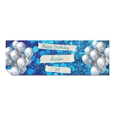 Personalised Birthday Banners Happy for Men & Women HD Printed Banner Decorations Him or Her Party Wall Blue Sparkles 1 x 6ft Large