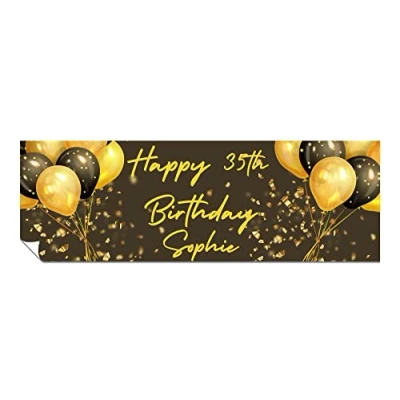 Personalised Birthday Banners Happy for Men & Women HD Printed Banner Decorations Him or Her Party Wall Gold Brown 1 x 6ft Large